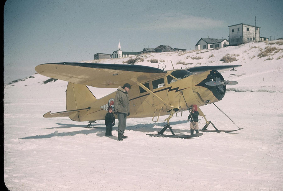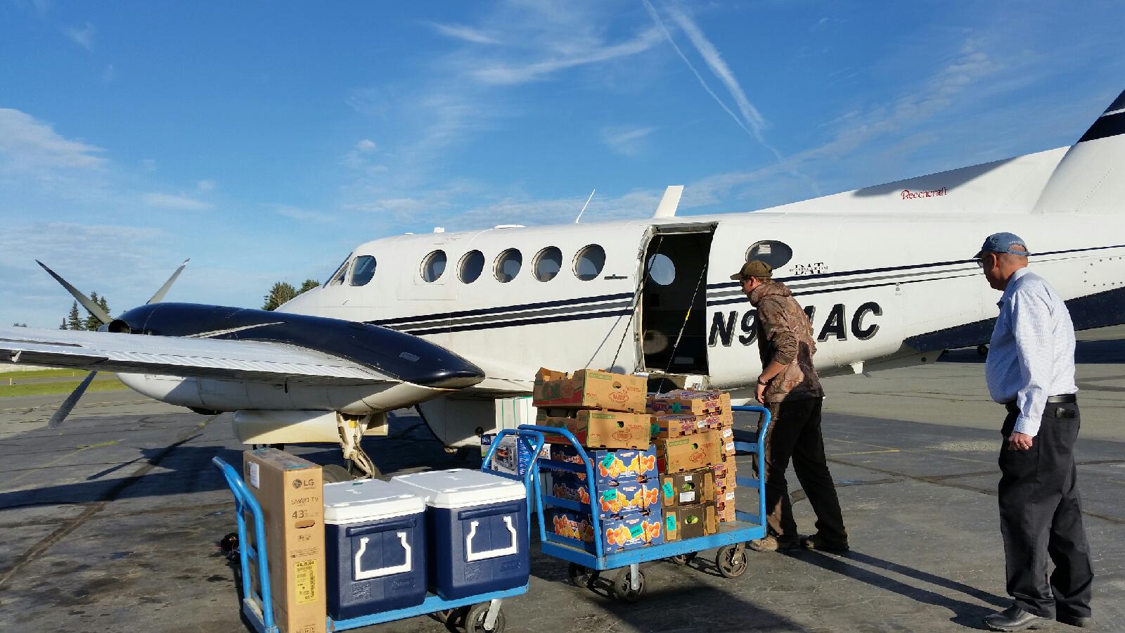 Beechcraft KingAir 200. CEO Russ Weller watching aircraft being loaded with freight, including door prizes for the 2017 Annual meeting and fresh fruit for the store. Board members share the aircraft cabin with the cargo for the trip out to Marshall.
